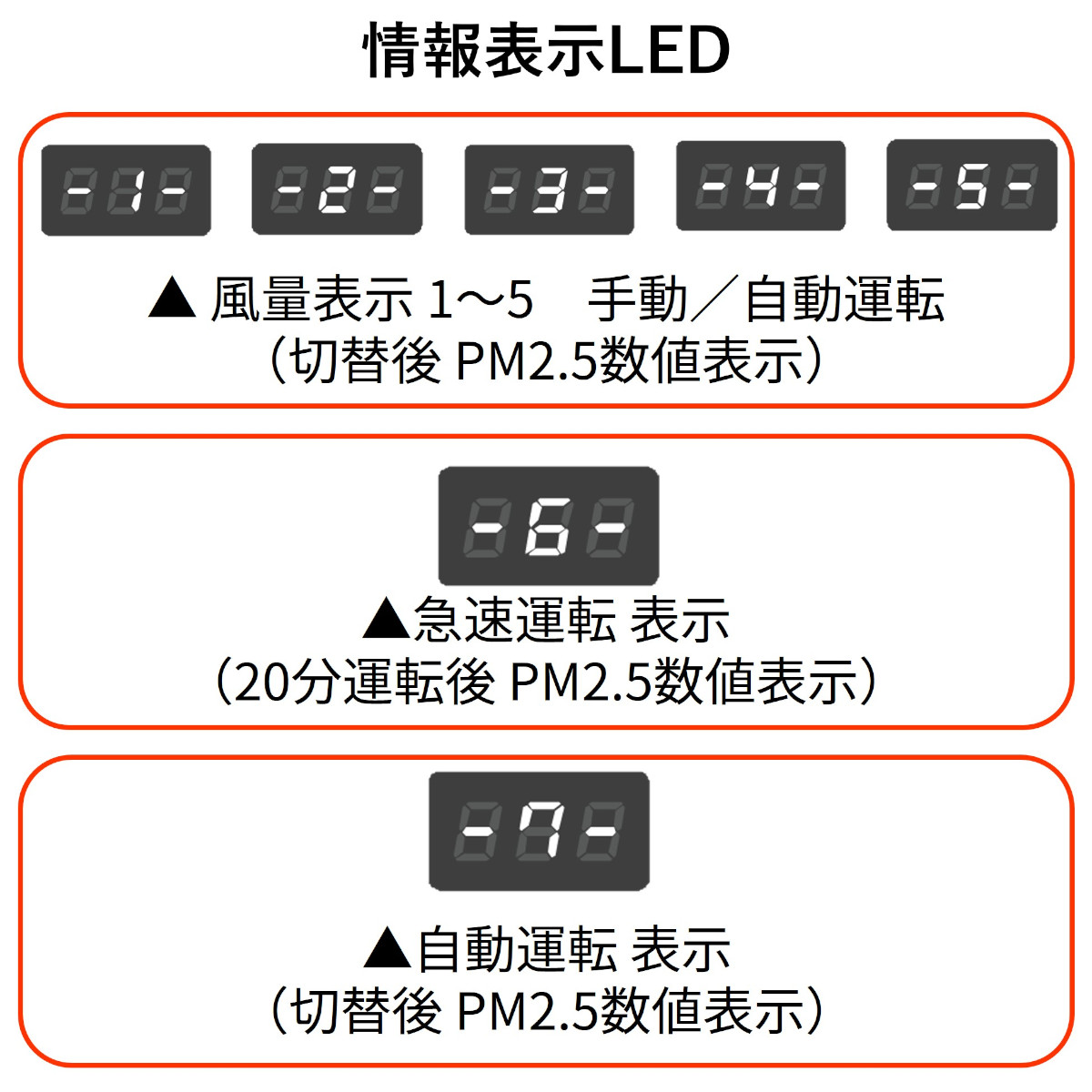 オートモードで運転時、PM2.5の表示数値が高いにも関わらず風量が上がらない場合は、センサーにホコリがたまっている可能性があります。取扱説明書をお読みいただき、お手入れをお願いします。