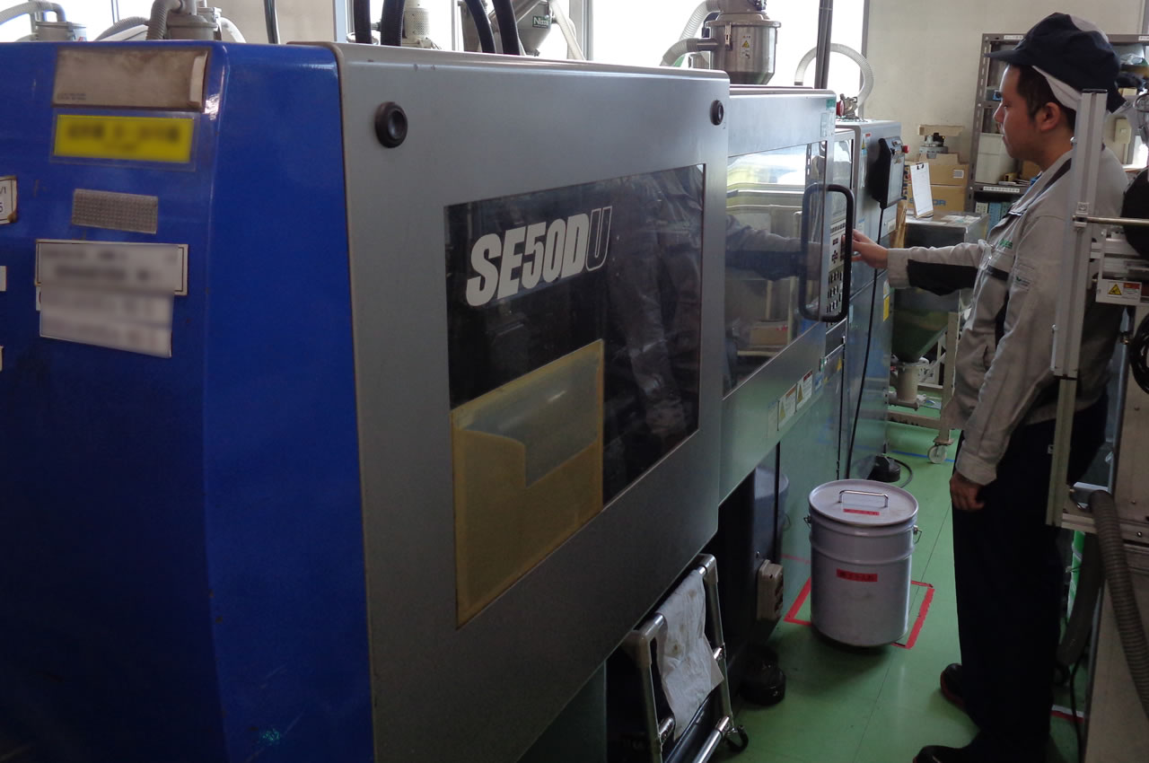 - プラスチック射出成形機の操作(条件設定、材料投入、成形品の取り出し など)